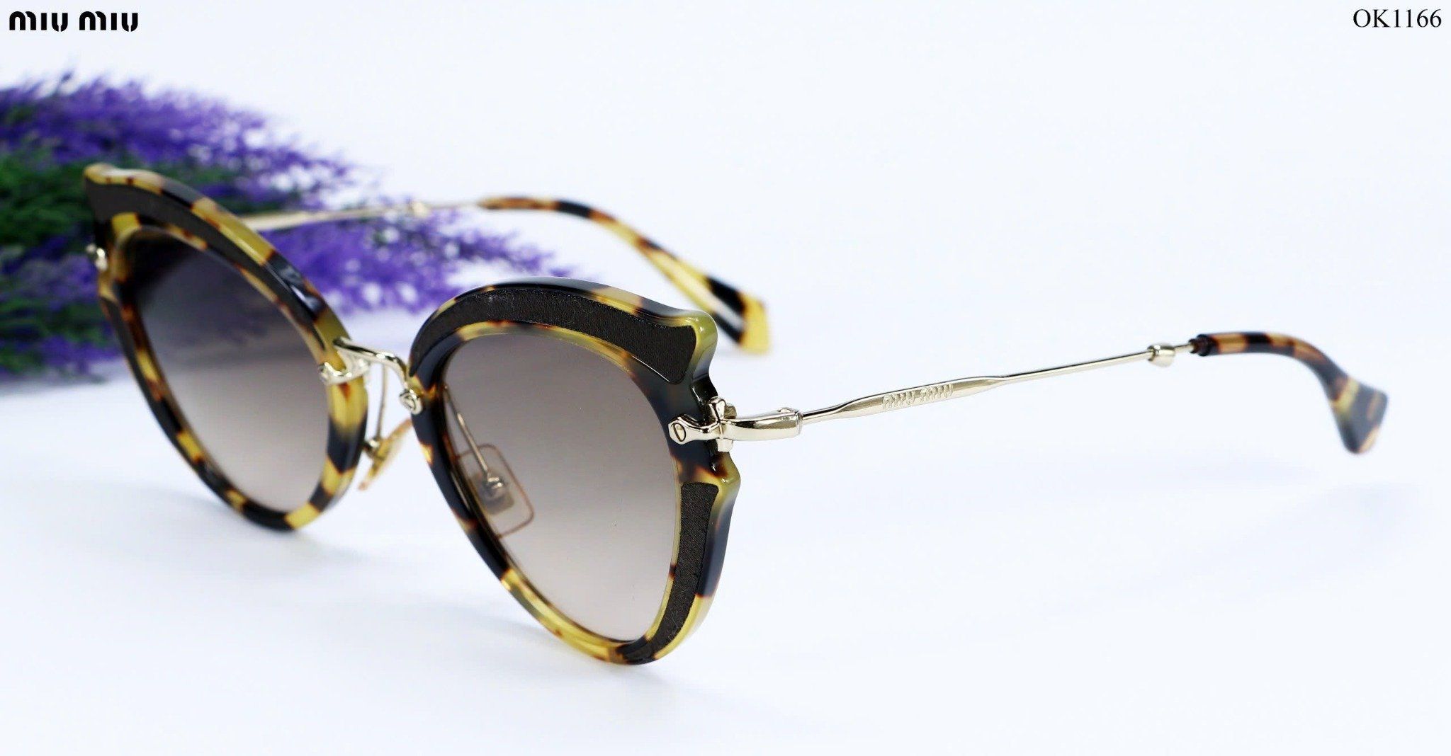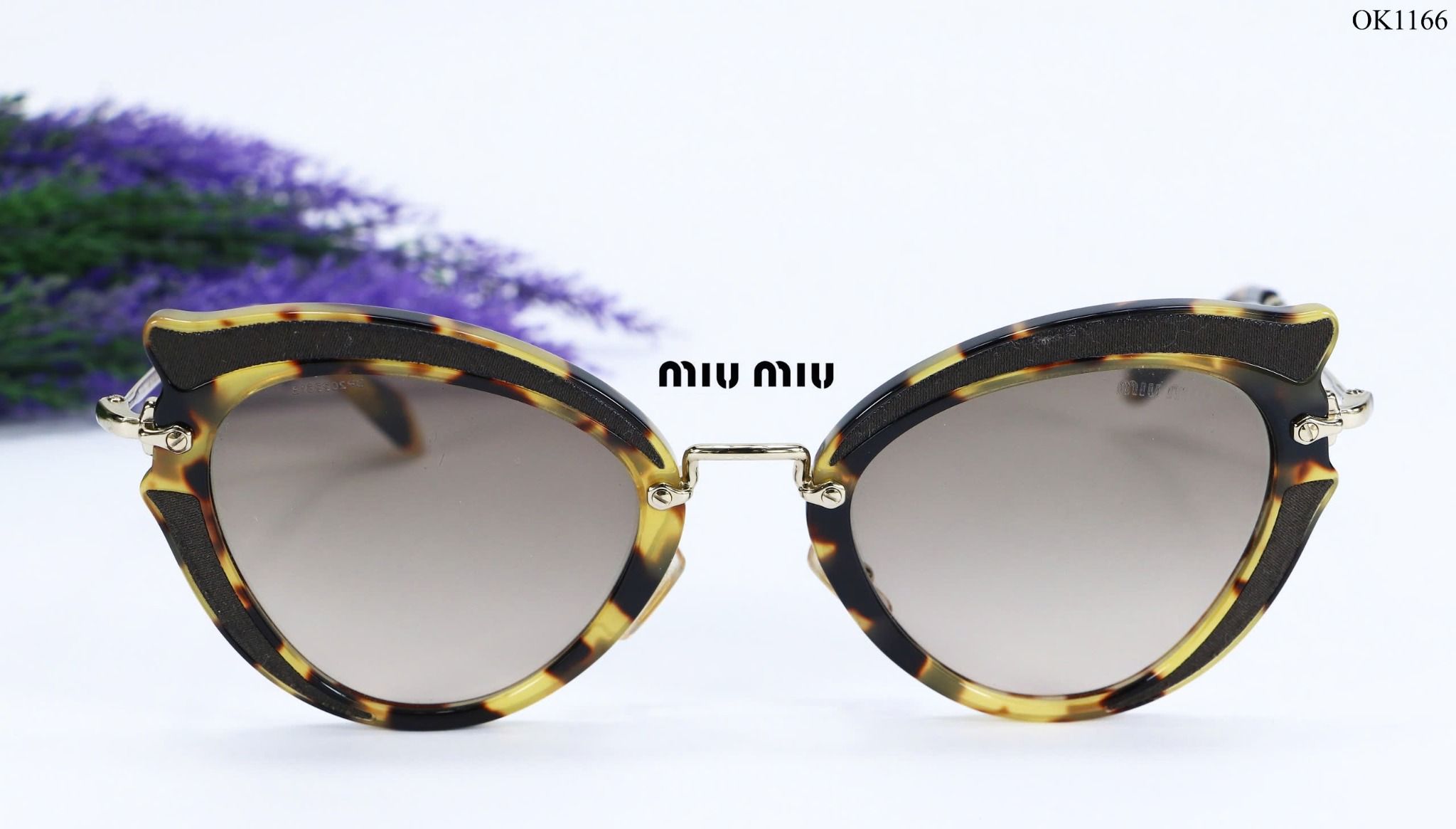Thông tin sản phẩm OK1166Thương hiệu: MiuMiuSản xuất: made in ItalyMàu: nâu đồi mồiKích thước: 52 - 23 - 140Dòng: kính mátĐộ mới: 92%Mô tả: Kính MiuMiu mắt mèo, dáng...