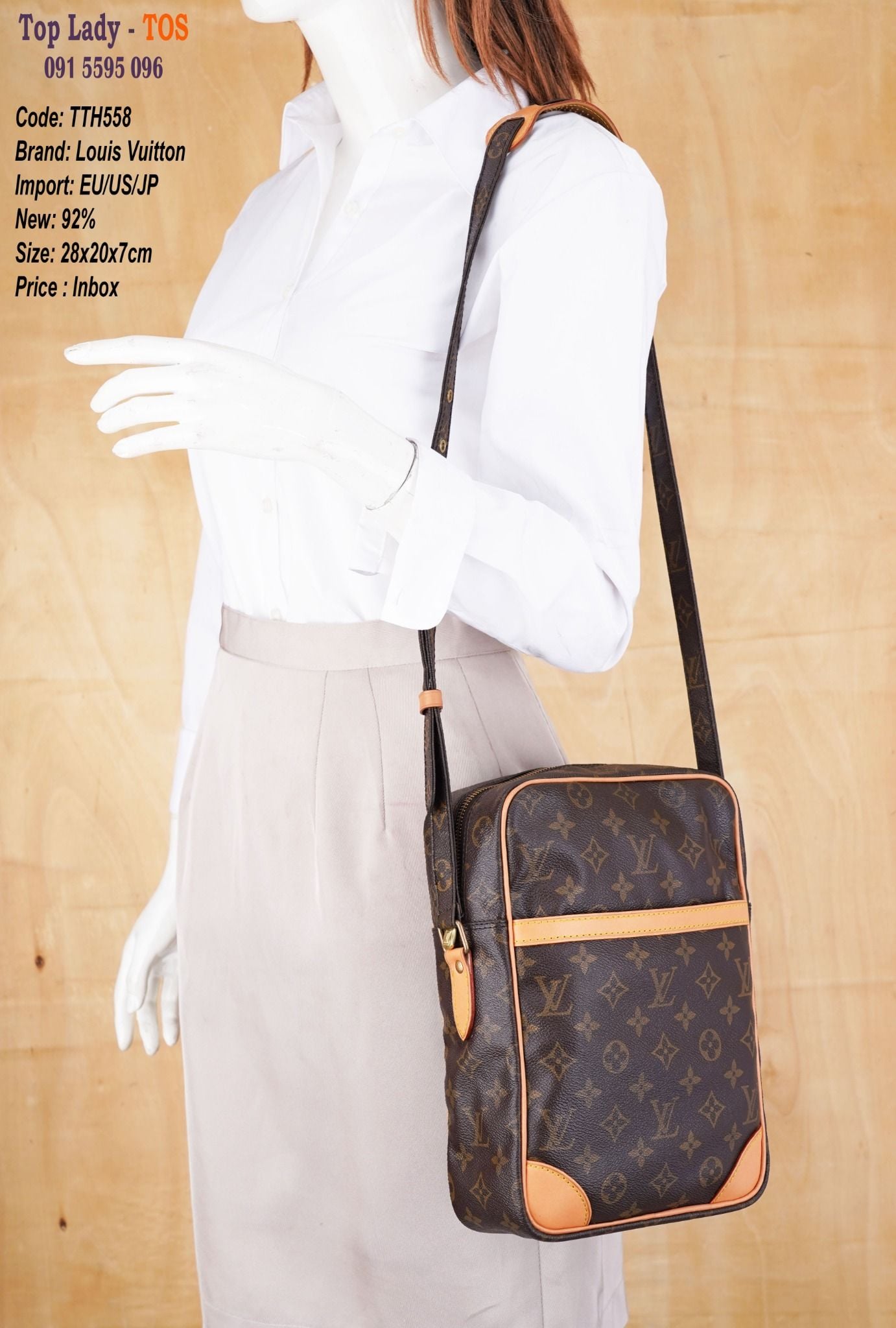 Thông tin sản phẩm: TTH558Sản xuất: Louis VuittonMàu: NâuKích thước: cao 28cm, ngang 20cm, đáy 7cmChất liệu: DaDòng: Túi đeo chéoĐộ mới: 92%Mô tả: phù hợp với đi chơi đi...