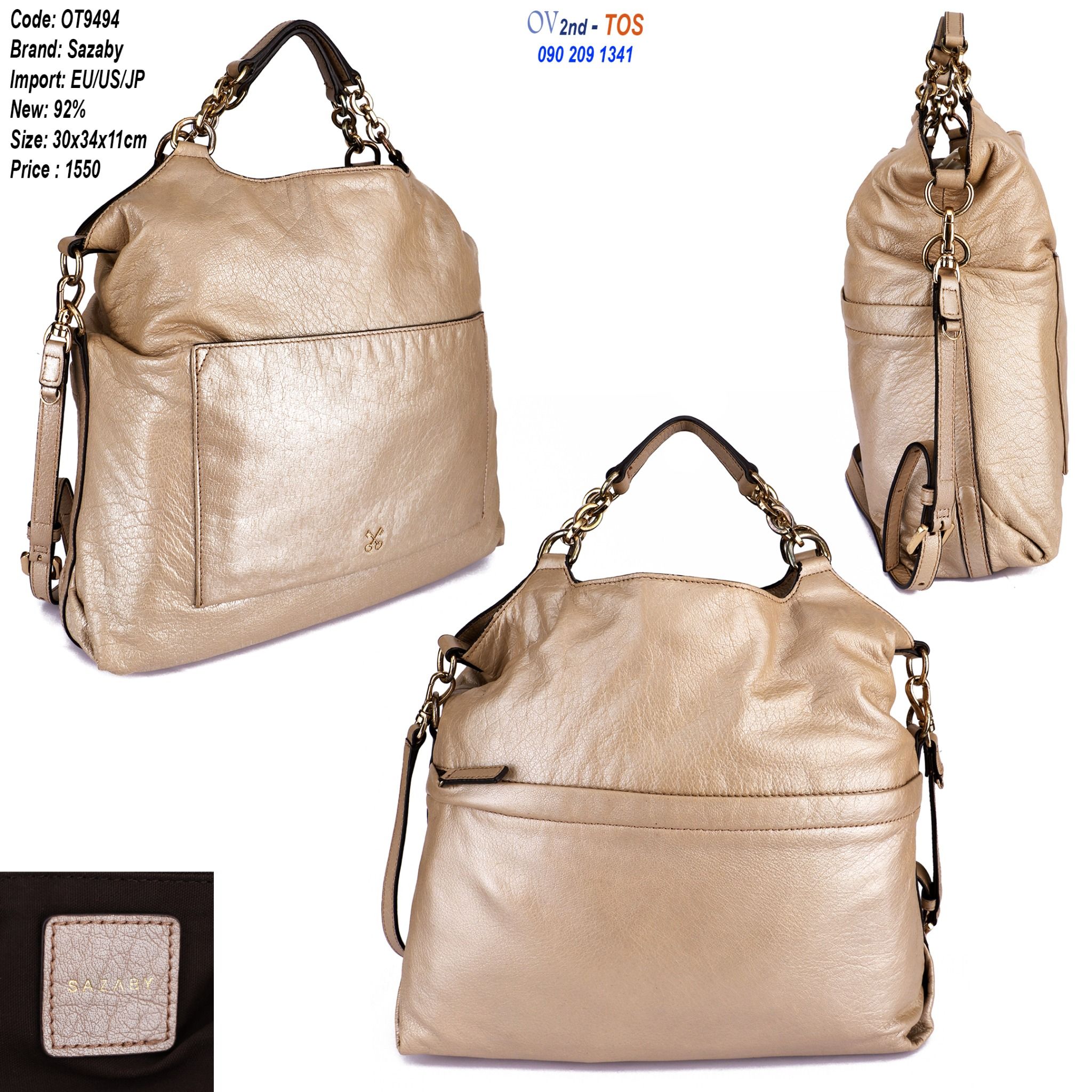 ThĂŽng tin sáșŁn pháș©m OT9494MĂ u: KemKĂch thưá»c: Cao 30cm x 34cm x 10cmCháș„t liá»u: DaDĂČng: TĂși xĂĄch tay/ Äeo chĂ©o Äá» má»i: 92%MĂŽ táșŁ: TĂși da tháșt bá»n Äáșčp, form to...