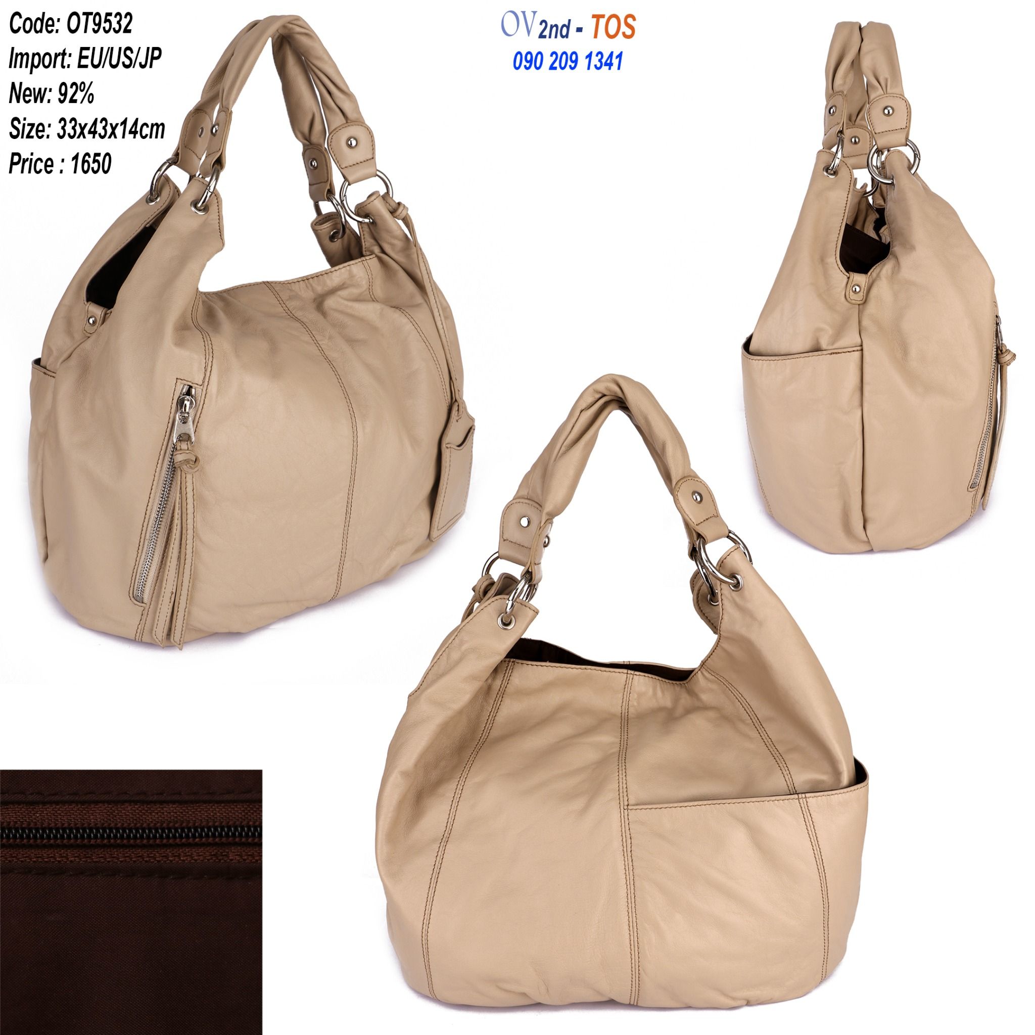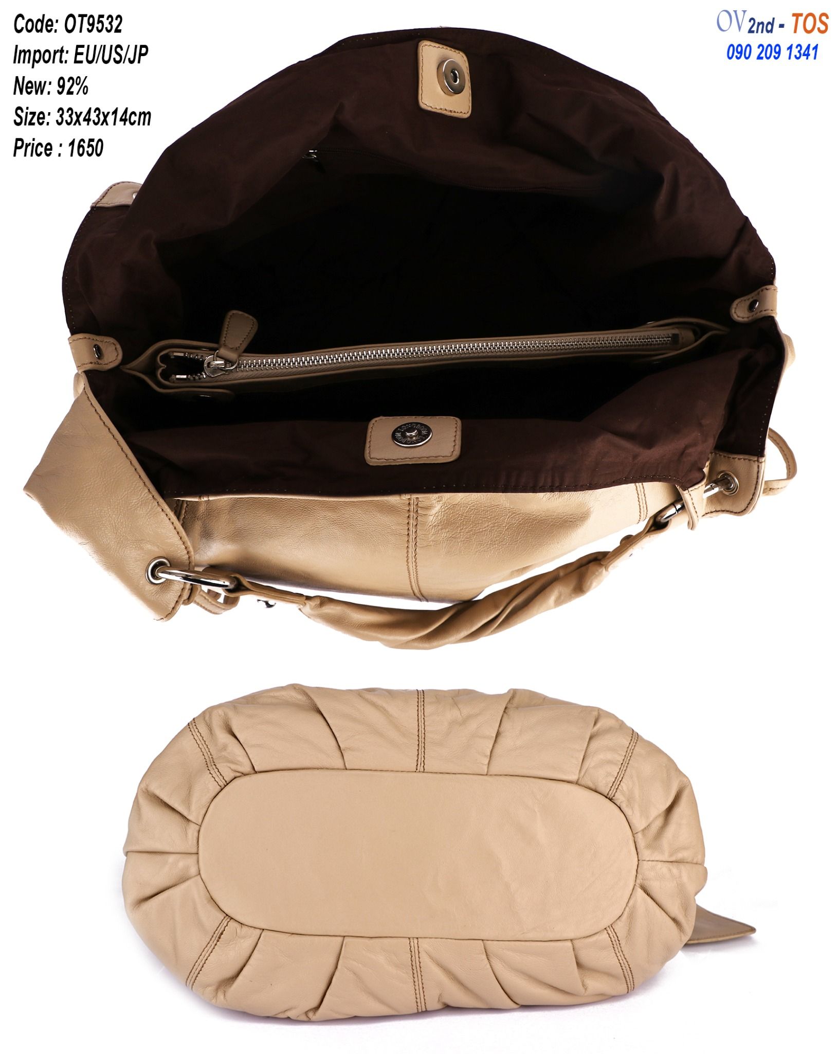 MĂŁ sáșŁn pháș©m: OT9532MĂ u: BeKĂch thưá»c: Cao 33cmx Ngang 43cm x ÄĂĄy 14cmCháș„t liá»u: Da DĂČng: TĂși xĂĄch tayÄá» má»i: 92%MĂŽ táșŁ: TĂși da da dĂĄng rá»ng Äá»±ng ÄÆ°á»Łc nhiá»u Äá»....