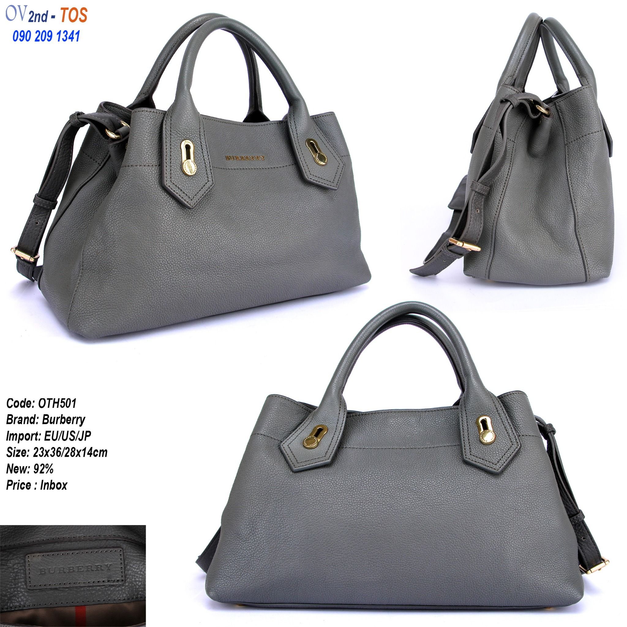 MĂŁ SP: OTH501Hiá»u: BurberryMáș·t hĂ ng: TĂși xach tay,Äeo chĂ©oMĂ u SáșŻc: xĂĄmCháș„t Liá»u: DaKĂch Thưá»c: cao 23cm x ngang 36cm x Äáșż 14 cmÄá» má»i 92%MĂ u xĂĄm ráș„t dá» phá»i Äá»...
