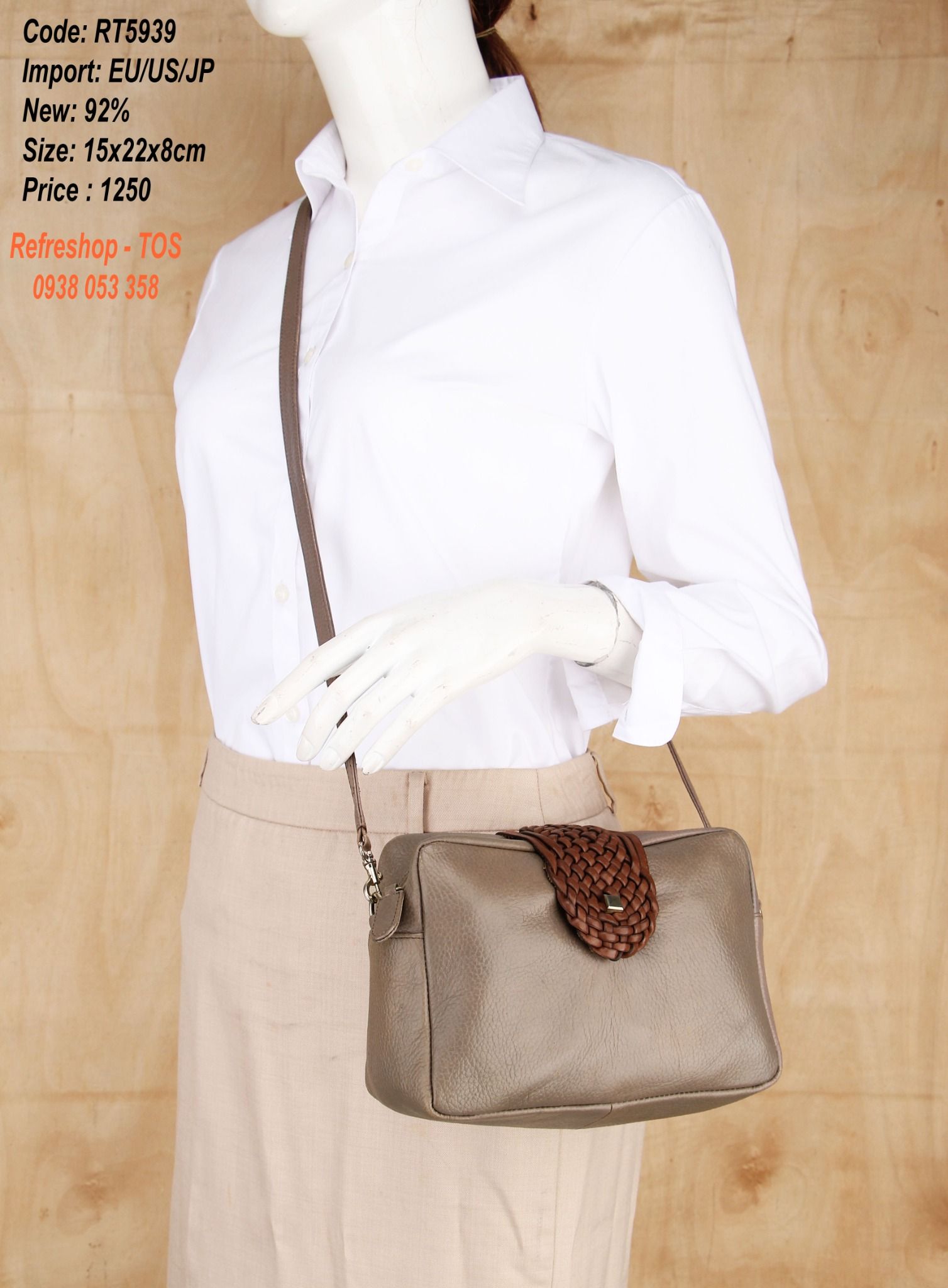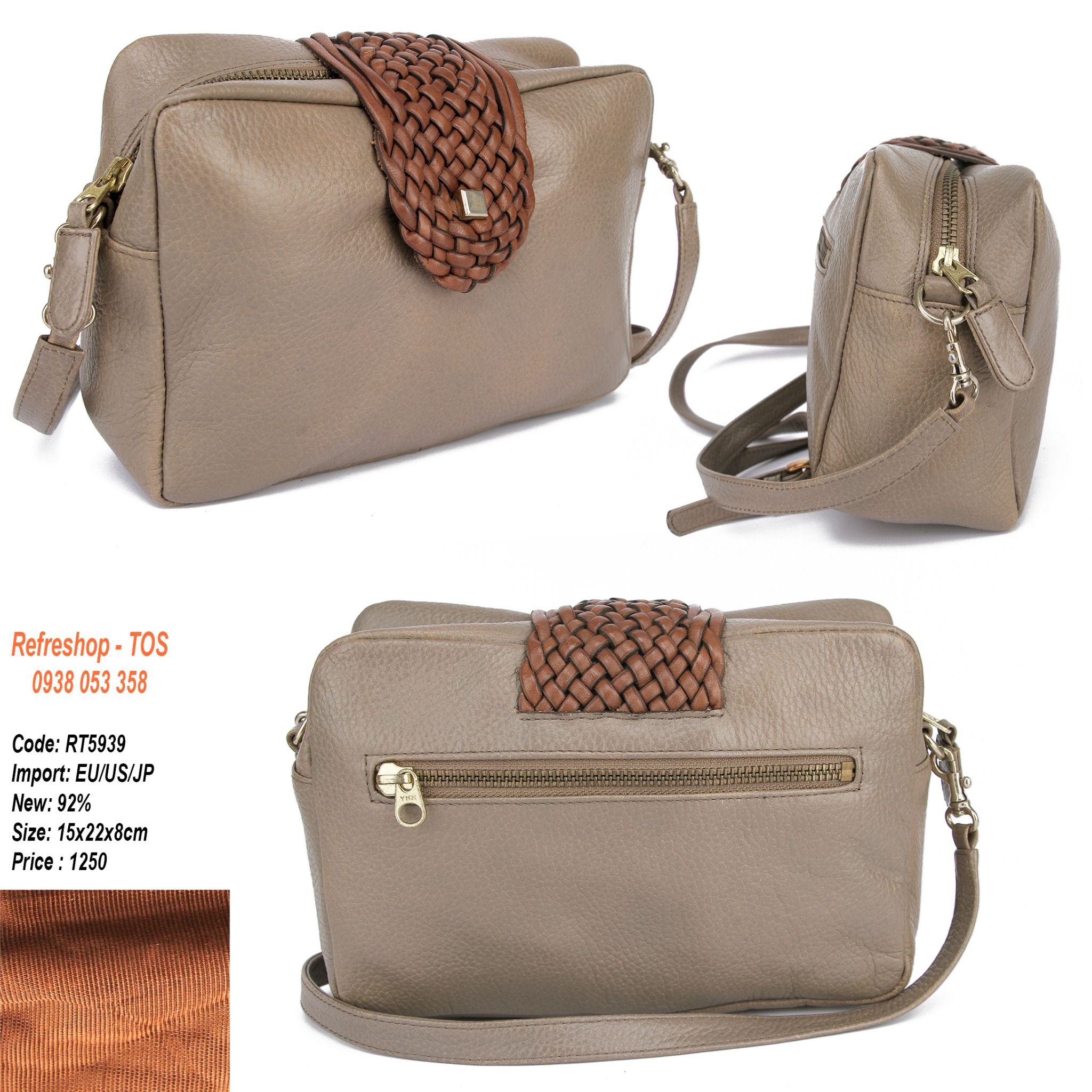 MĂŁ RT5939Máș·t hĂ ng: TĂși Äeo chĂ©oSize cao 15cm x ngang 22cm x ÄĂĄy 8cmChĂąÌt liĂȘÌŁu: daChĂąÌt liĂȘÌŁu loÌt: VáșŁiMĂ u: NĂąuÄá» má»i 92%TĂși da thiáșżt káșż ÄÆĄn giáșŁn thuáșn tiá»n sá»...