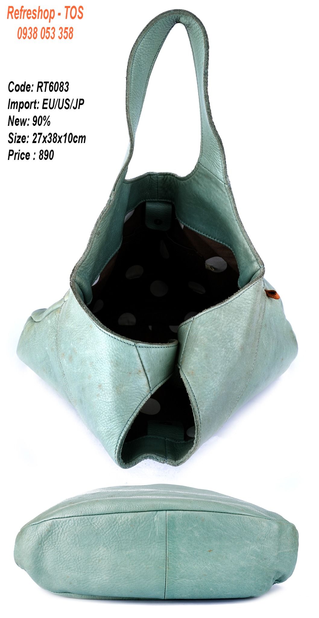 MĂŁ sáșŁn pháș©m: RT6083MĂ u: Xanh ngá»cKĂch thưá»c: Cao 27cmx Ngang 38cm x ÄĂĄy 10cmCháș„t liá»u: Da DĂČng: TĂși xĂĄch tayÄá» má»i: 90%MĂŽ táșŁ: TĂși da dĂĄng rá»ng Äá»±ng ÄÆ°á»Łc nhiá»u Äá»....