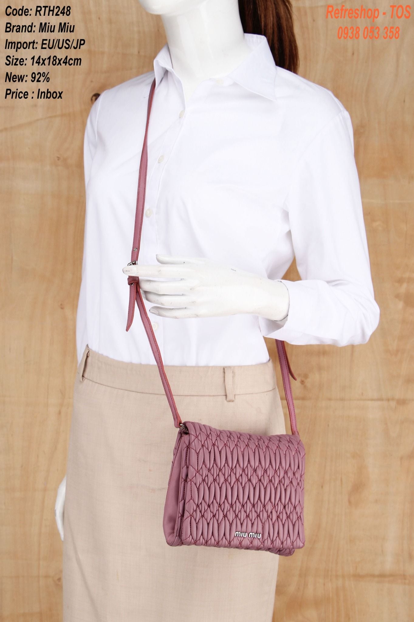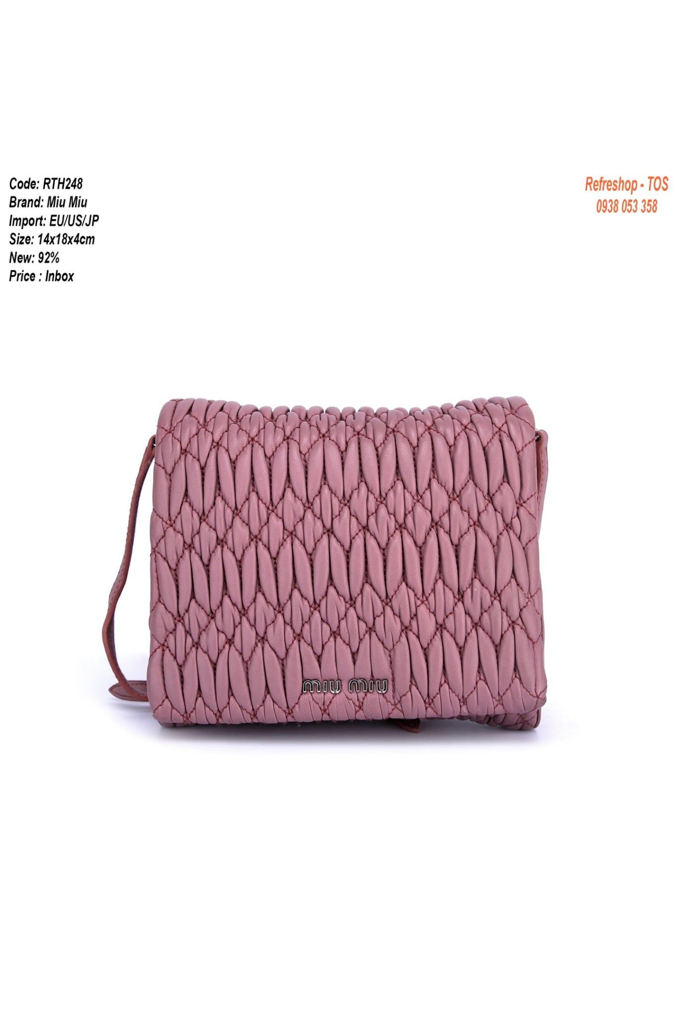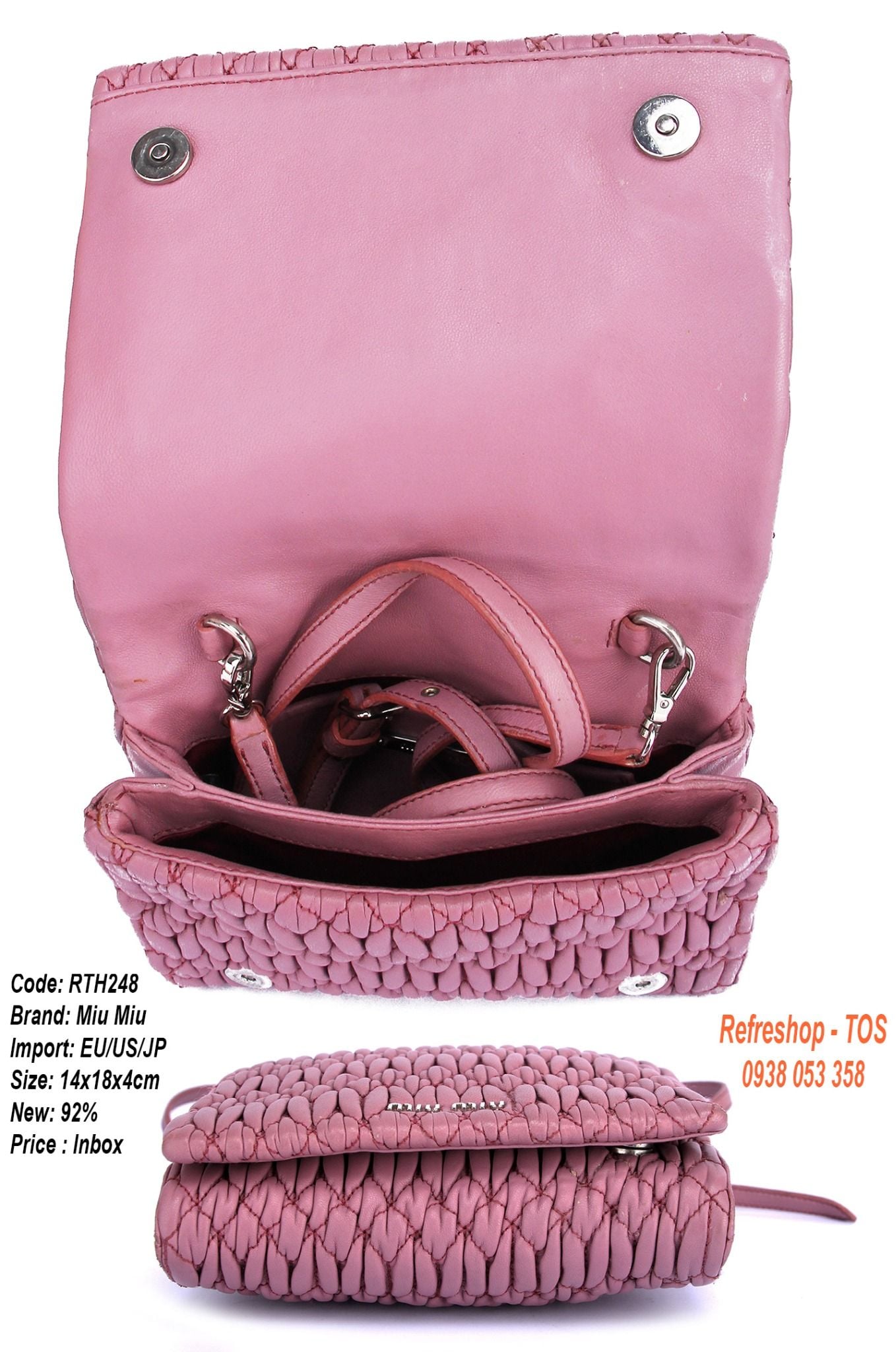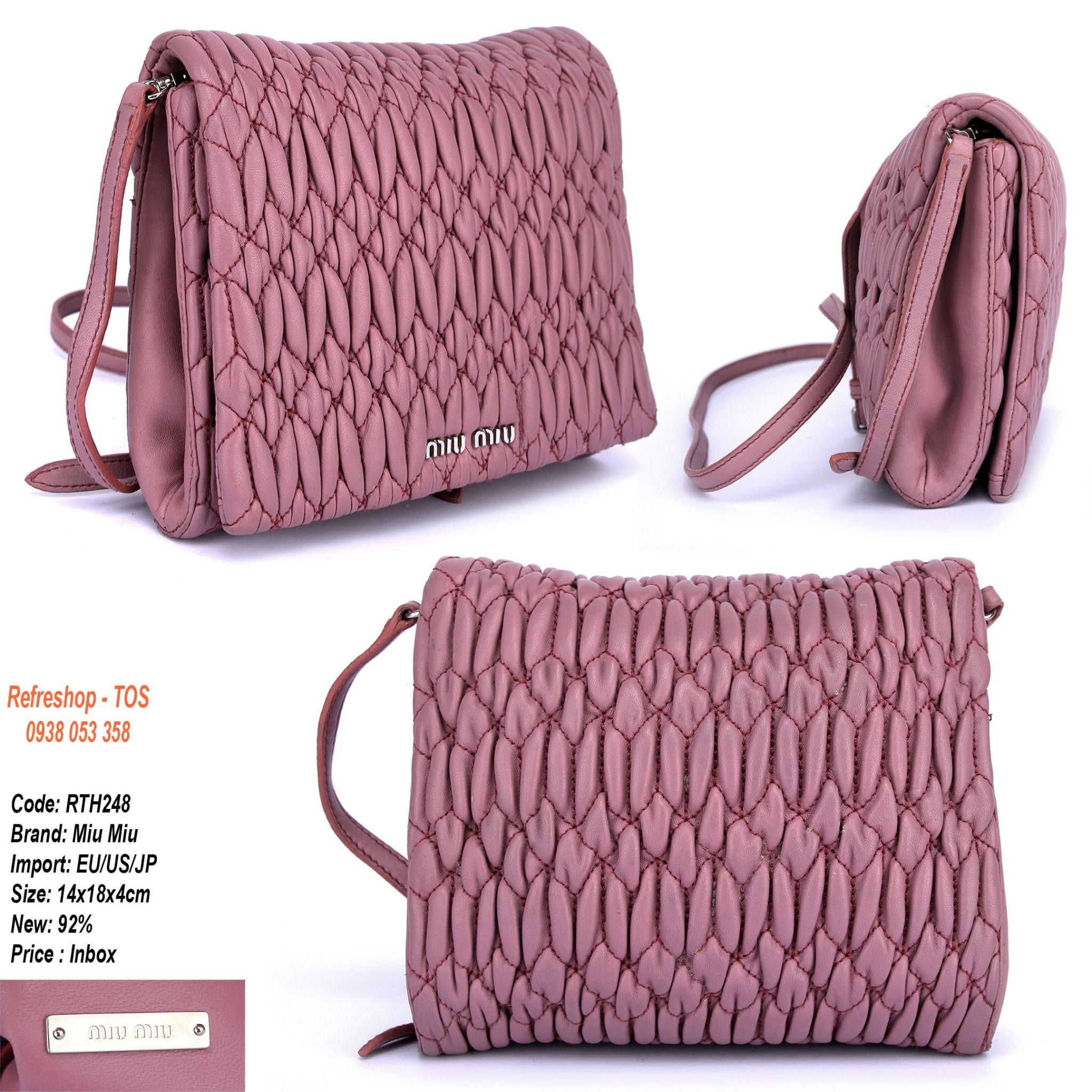 MĂ SP: RTH248ThÆ°ÆĄng Hiá»u Miu MiuMáș·t hĂ ng: TĂși Äeo chĂ©oSize cao 14cm x ngang 18cm x ÄĂĄy 4cmChĂąÌt liĂȘÌŁu: daMĂ u há»ngChĂąÌt liĂȘÌŁu loÌt: váșŁiÄá» má»i 92%SĂŽÌ ngÄn ÄÆ°ÌŁng: GĂŽÌm 1...